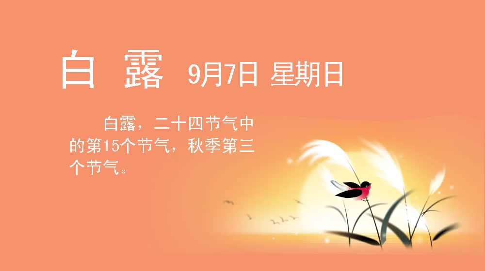 “露从今夜白,月从秋夜明”。今年9月7日11时11分06秒,我们将迎来“二十四节气”中的第15个节气——白露,它也是秋季的第3个节气,标志着仲秋正式启幕。