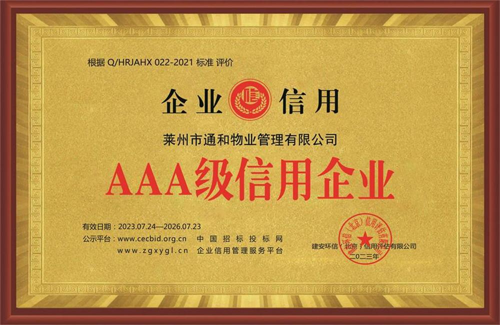 莱州通和物业AAA级信用企业
