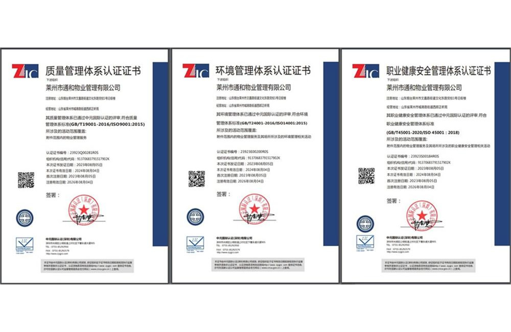 莱州通和物业“三体系认证企业”